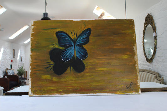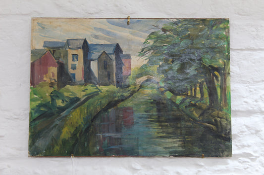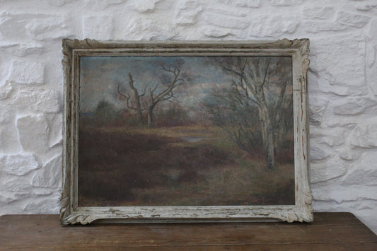 French Painting with a Lovely Stressed Frame of a Countrywide Scene