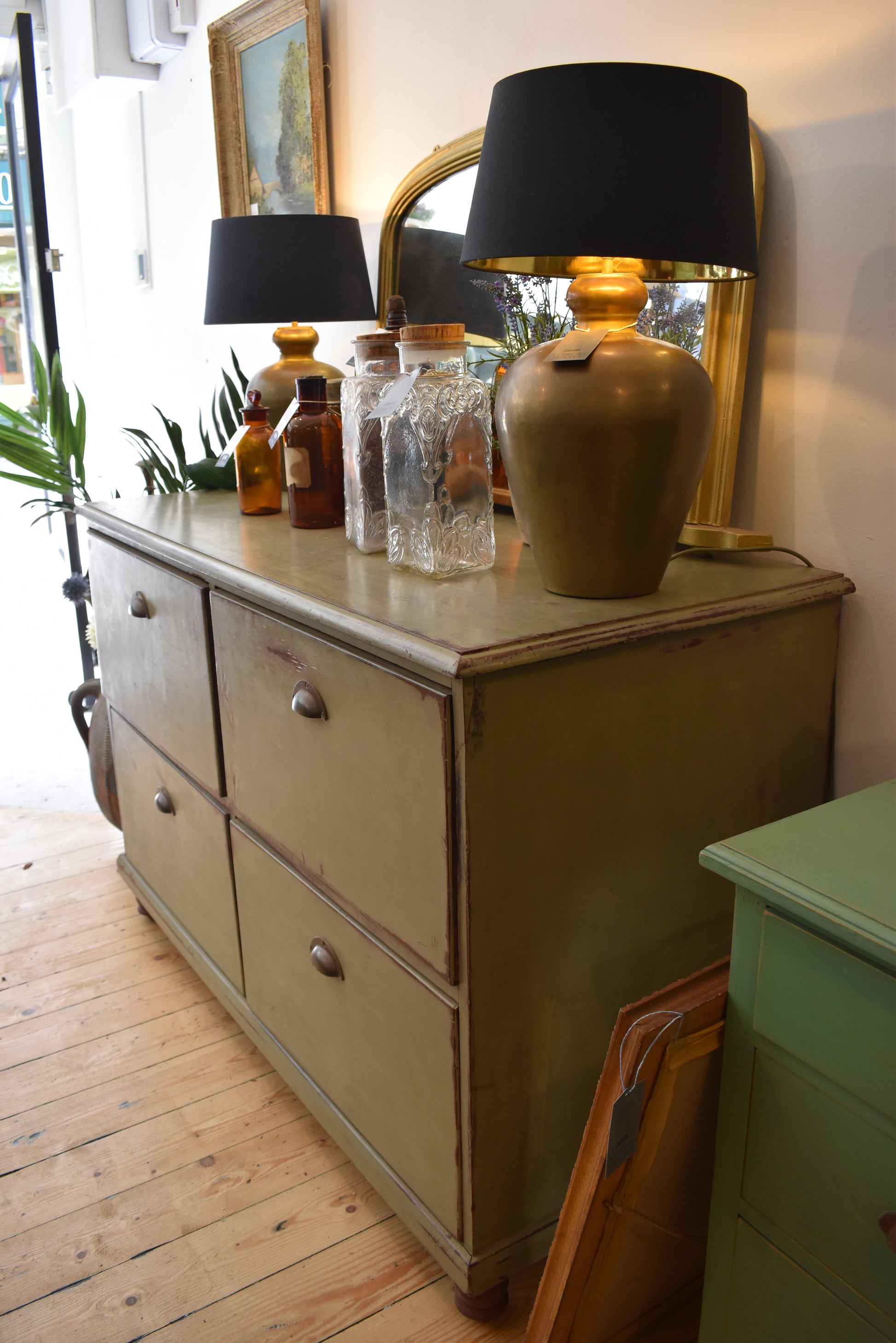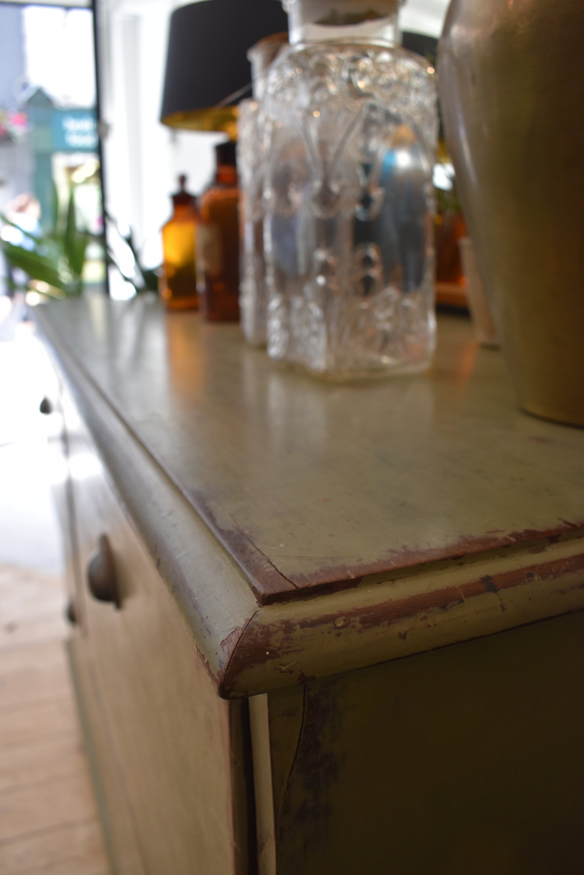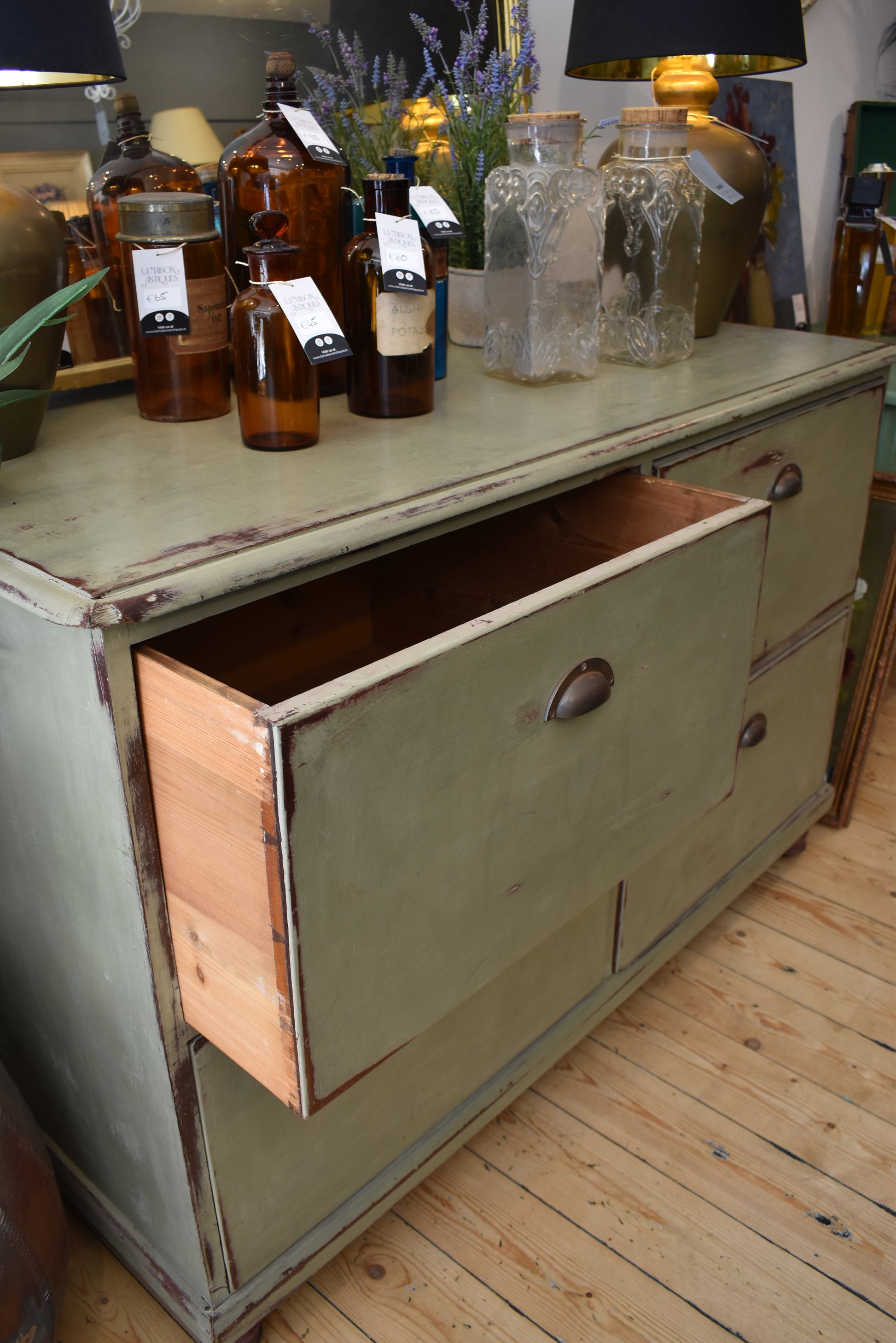 Original Bank of Drawers, with four deep drawers. Painted a beautiful rustic pistachio green.