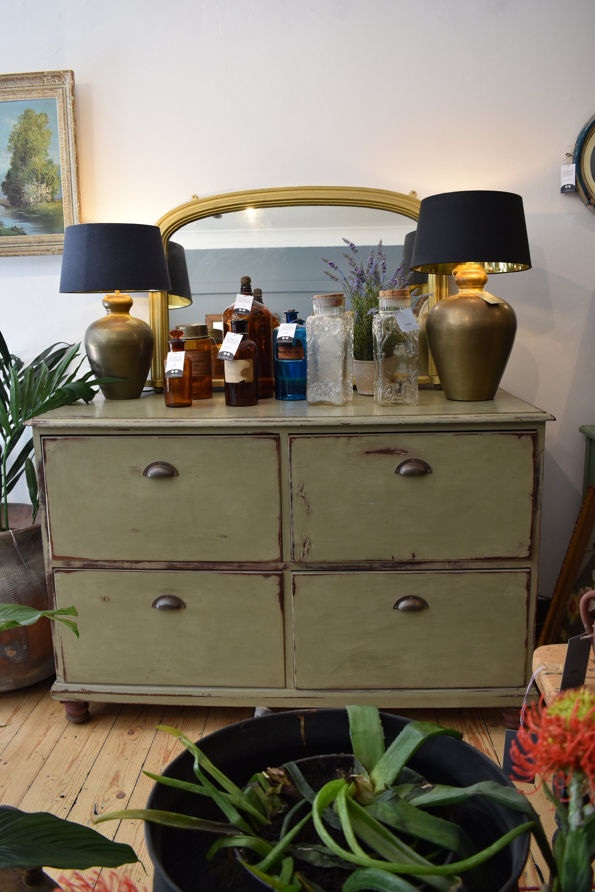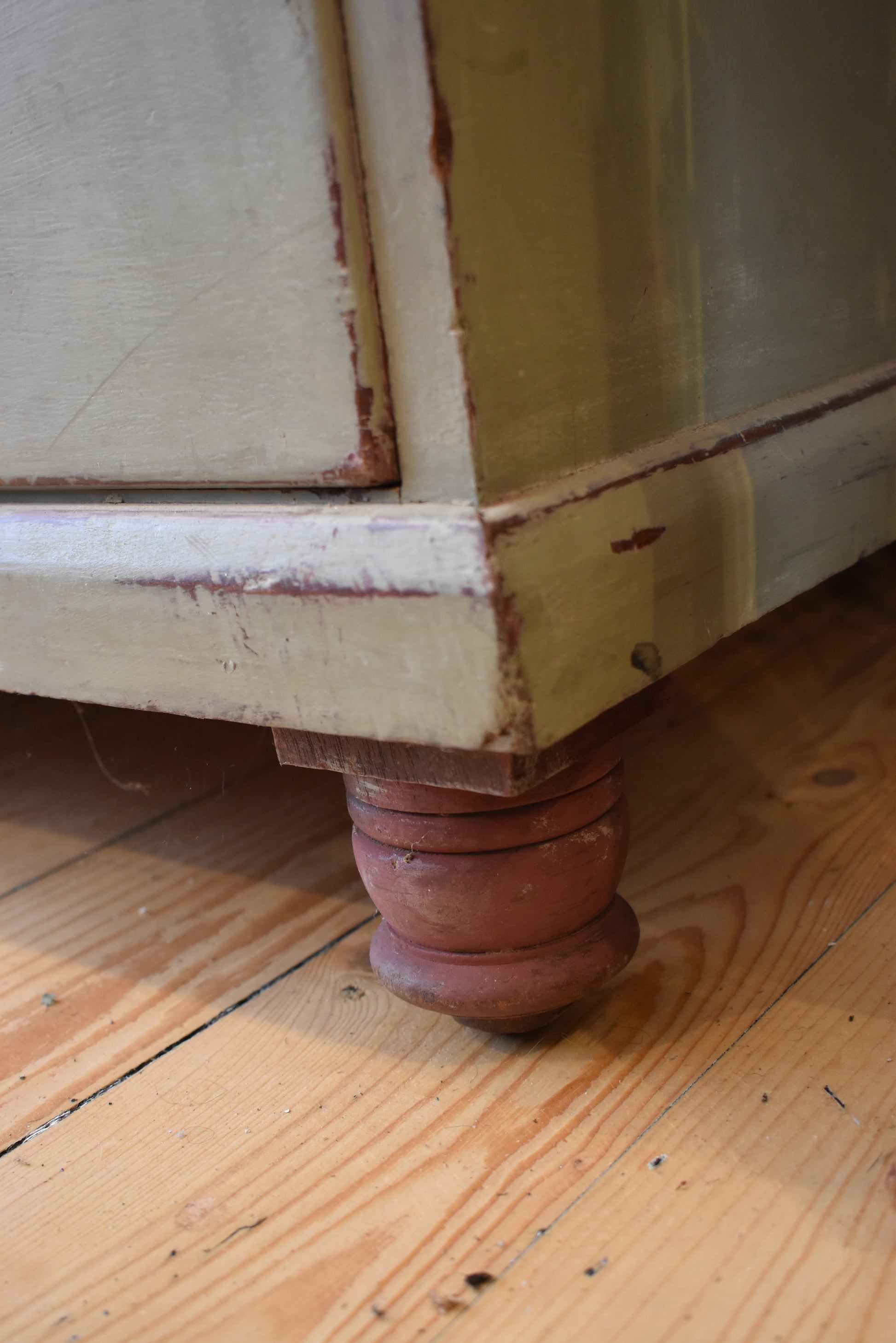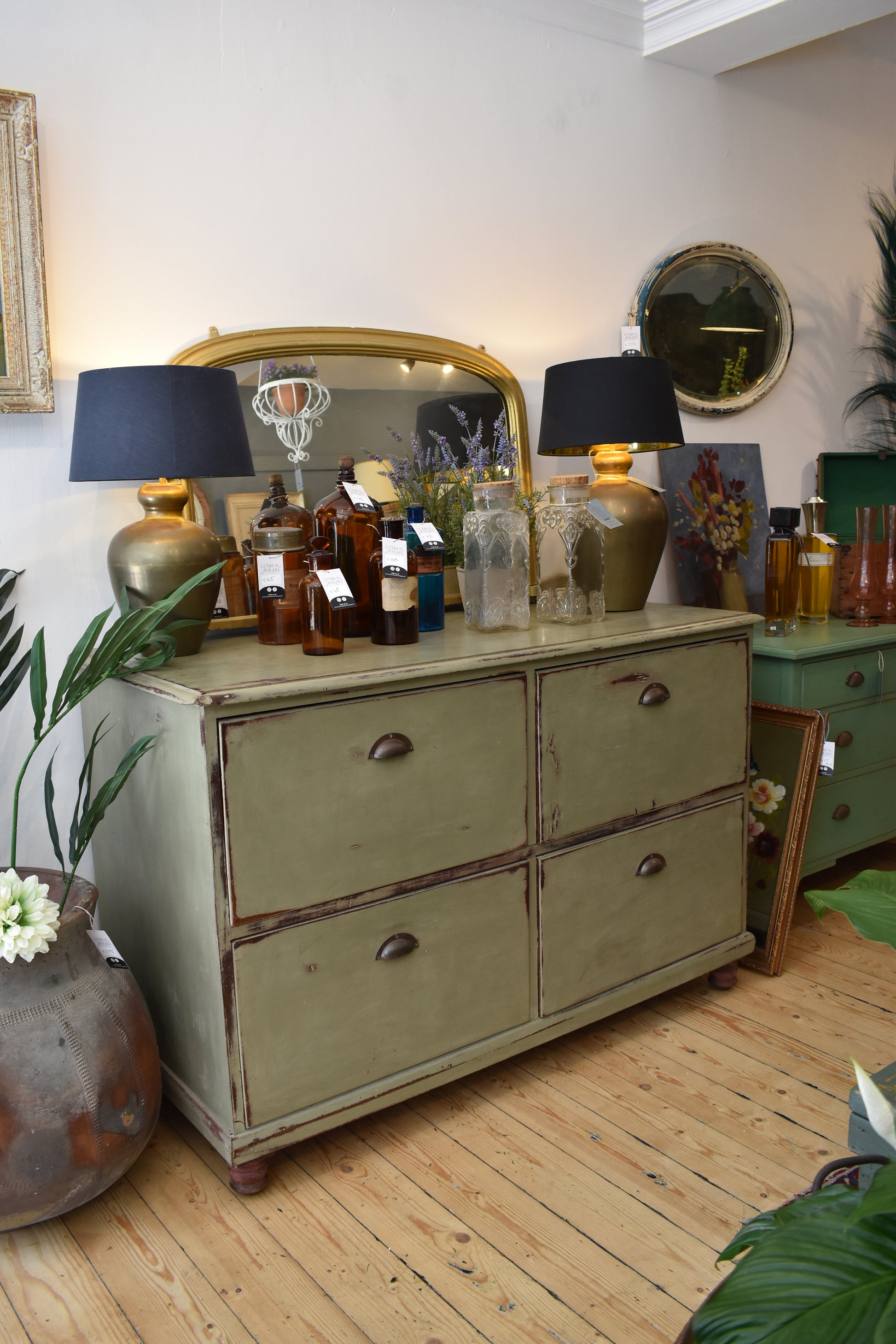 Original Bank of Drawers, with four deep drawers. Painted a beautiful rustic pistachio green.