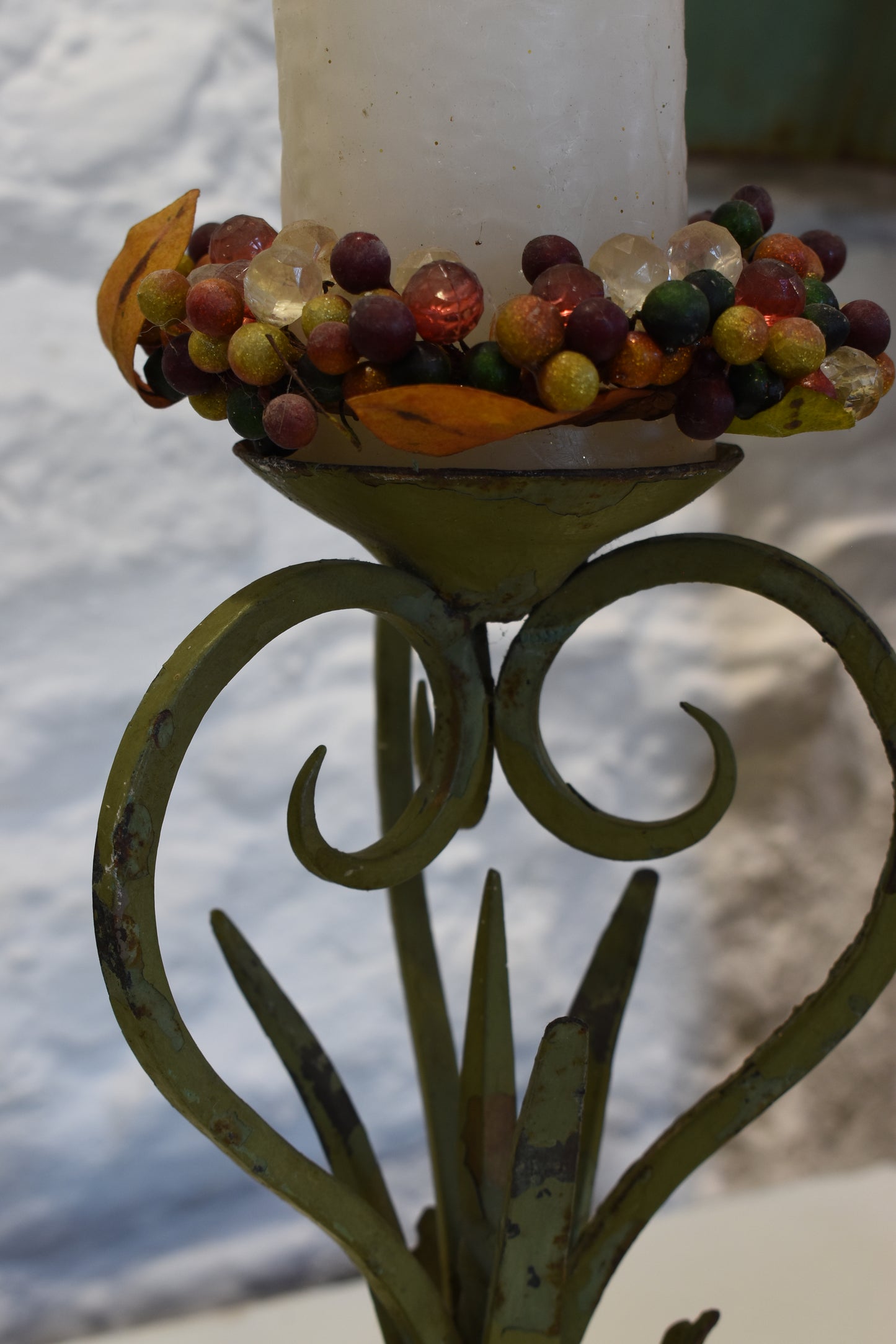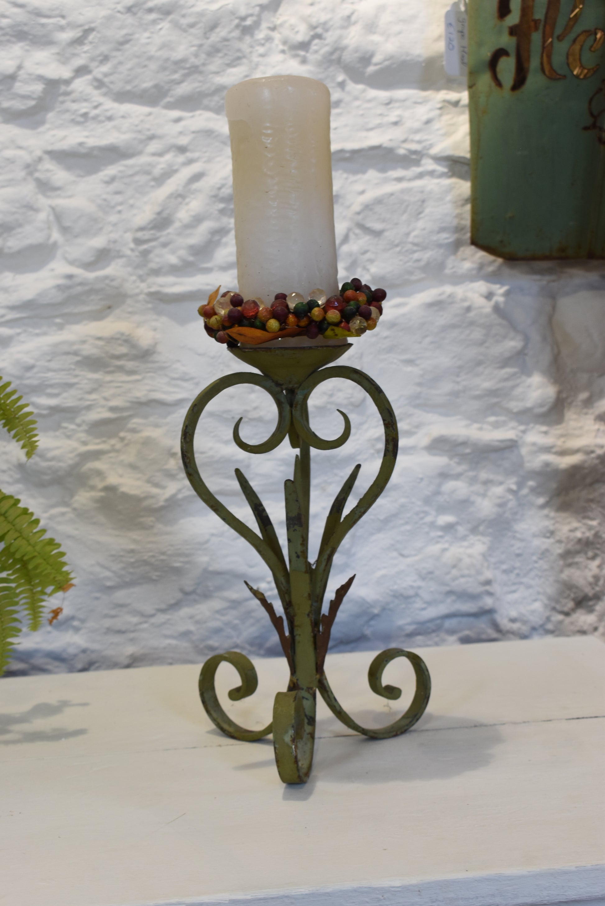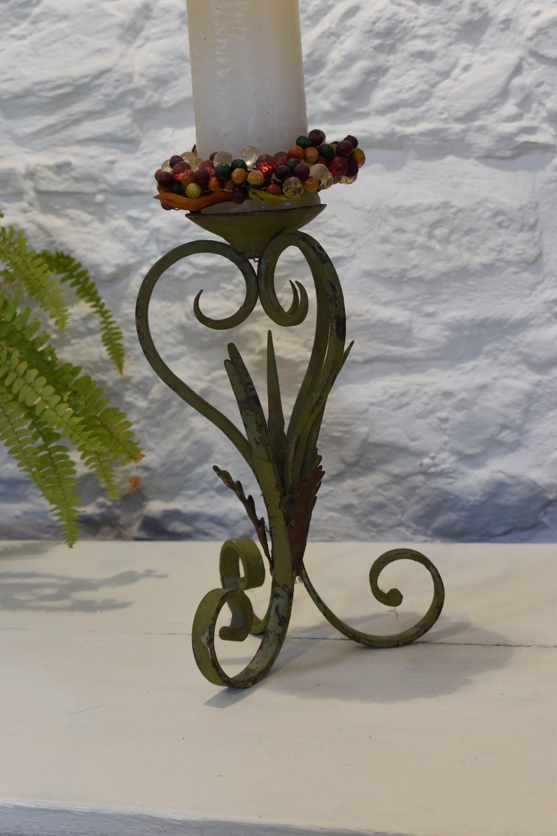 This was originally a lamp but has been repurposed as a candle holder.